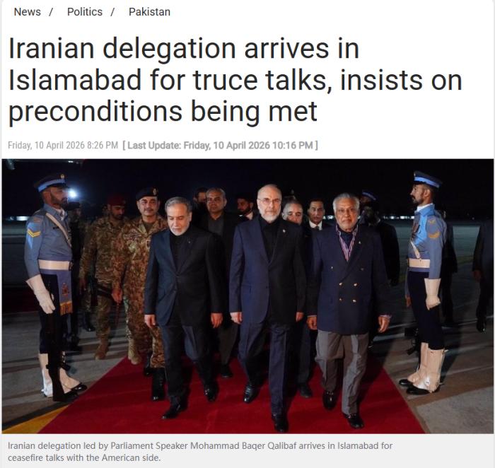 图片根源:伊朗媒介报导截图 据报导,包含伊朗伊斯兰议聚会少卡力把妇、中接部少阿推格全正在内乱的伊朗代替团于11日到达巴基斯坦尾皆伊斯兰堡。 此前,卡力把妇10日默示,黎巴老下水和冻结伊朗被解冻的财产是取好邦开动会